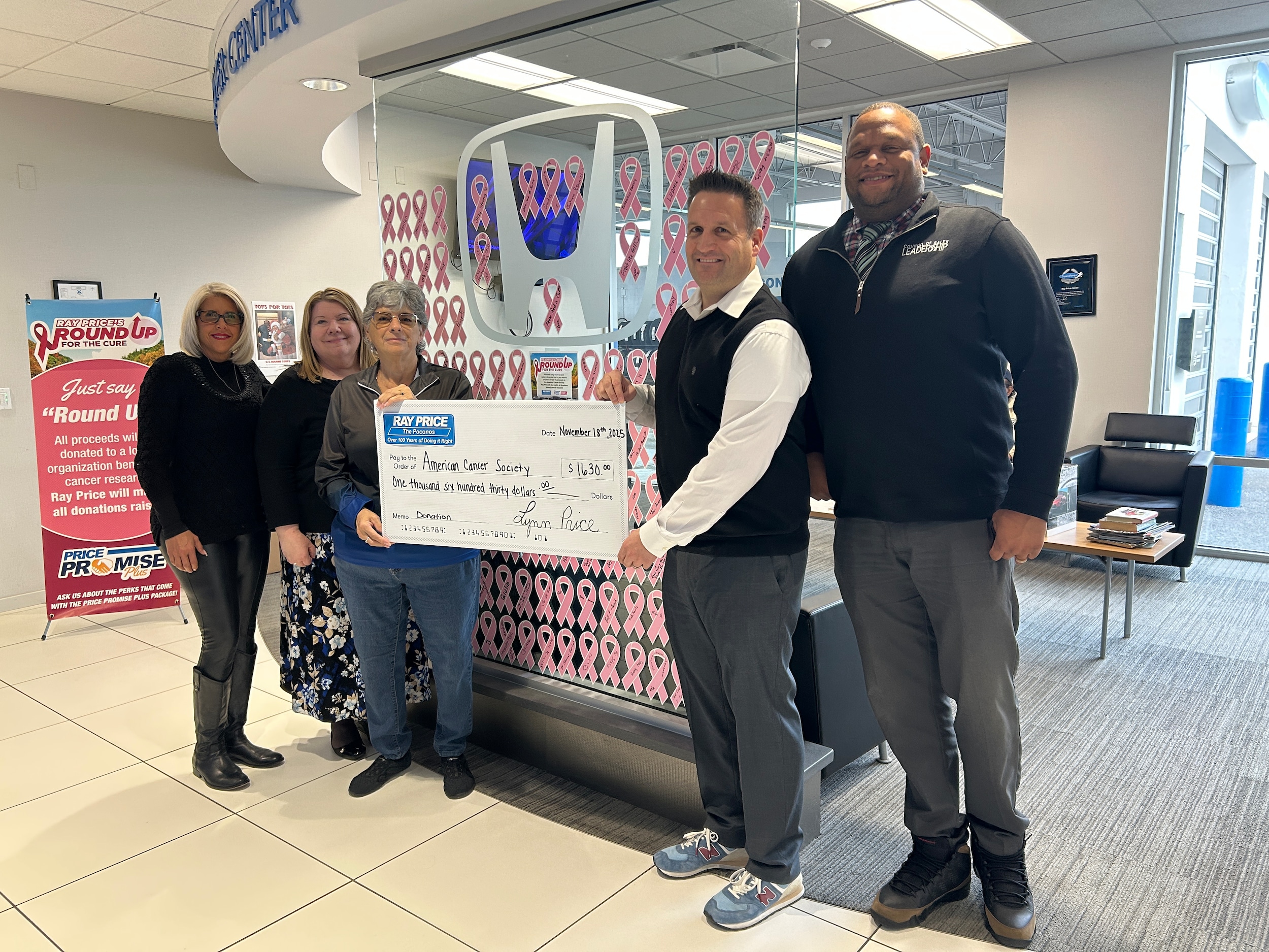 To help cancer patients in our community, customers had the opportunity to "Round Up" their sales and service transaction at any Ray Price dealership all October long. Because of your generosity, we presented a check for $2,500 to the Dale & Frances Hughes Cancer Center. Dales & Frances Hughes Cancer Center provides a full range of cancer services including diagnostic, treatment, and supportive care on the campus of Lehigh Valley Hospital.